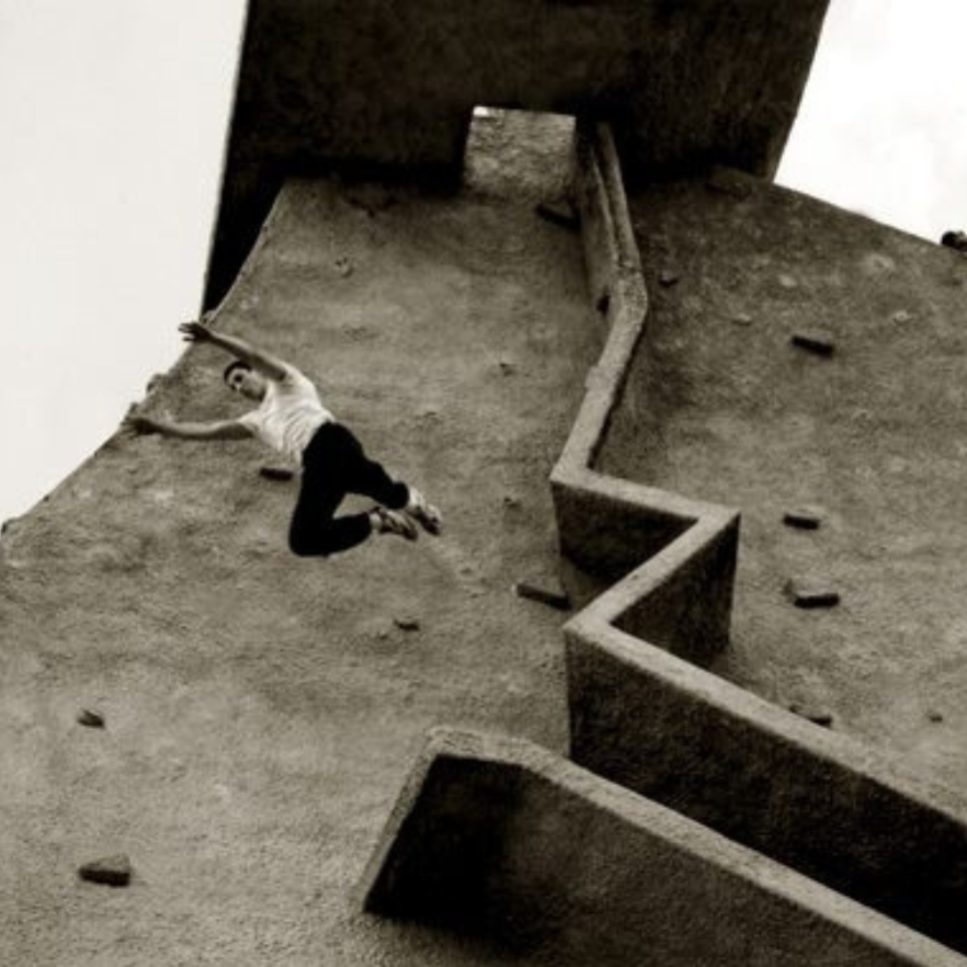 Shop nowThis was a photo of David Belle taken in 1998. Since then, this jump has become one of the most famous silhouettes in the history of Parkour and is the official DAVID BELLE logo.